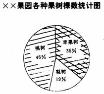 例如,果园里有三种果树,其中有苹果树1400棵,梨树760棵,桃树1840棵。问各种果树各占果树总数的百分之几?并制成扇形统计图。先算出每种果树各占总数的百分数:①总数1400+760+1840=4000(棵),②苹果树所占百分数1400÷4000=35%,③梨树所占百分数760÷4000=19%,④桃树所占百分数1840÷4000=46%。