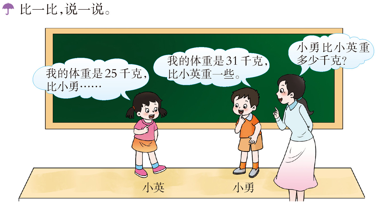 观察自己小组同学的体重记录表,把自己的体重和同学比较一下,或者是比较另外两个同学的体重,你有什么发现?能提出什么数学问题?
