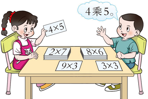 你们会读乘法算式吗?请读一读卡片上的乘法算式吧!